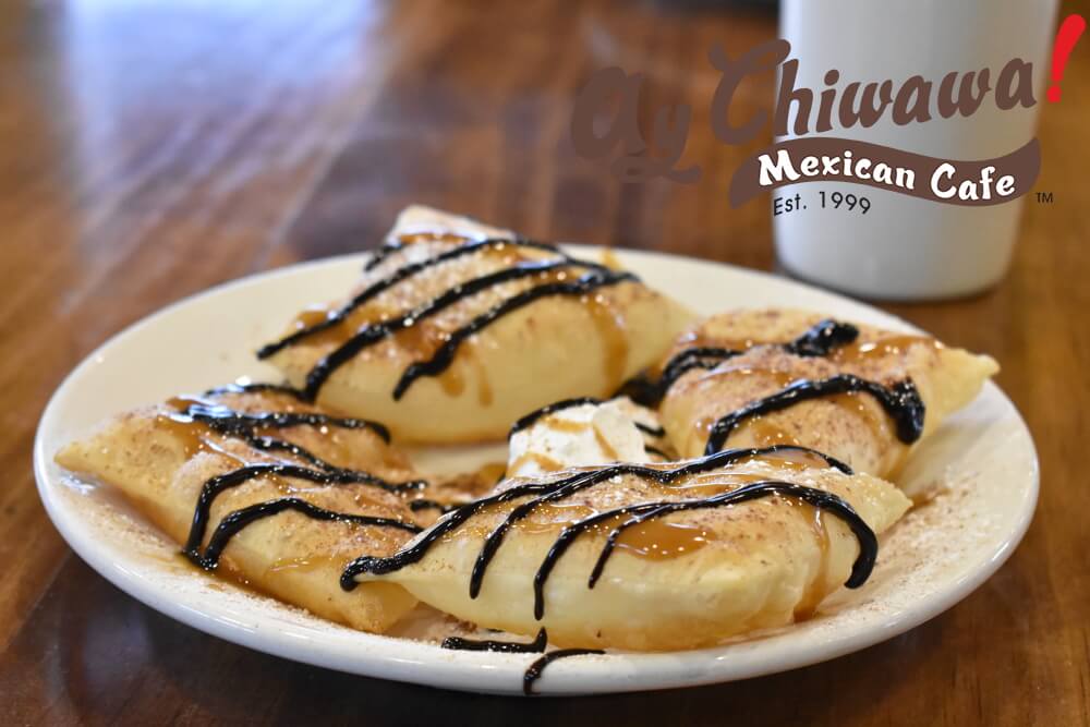 2 beef, chicken or cheese enchiladas covered with our savory Tex-Mex gravy & cheddar cheese