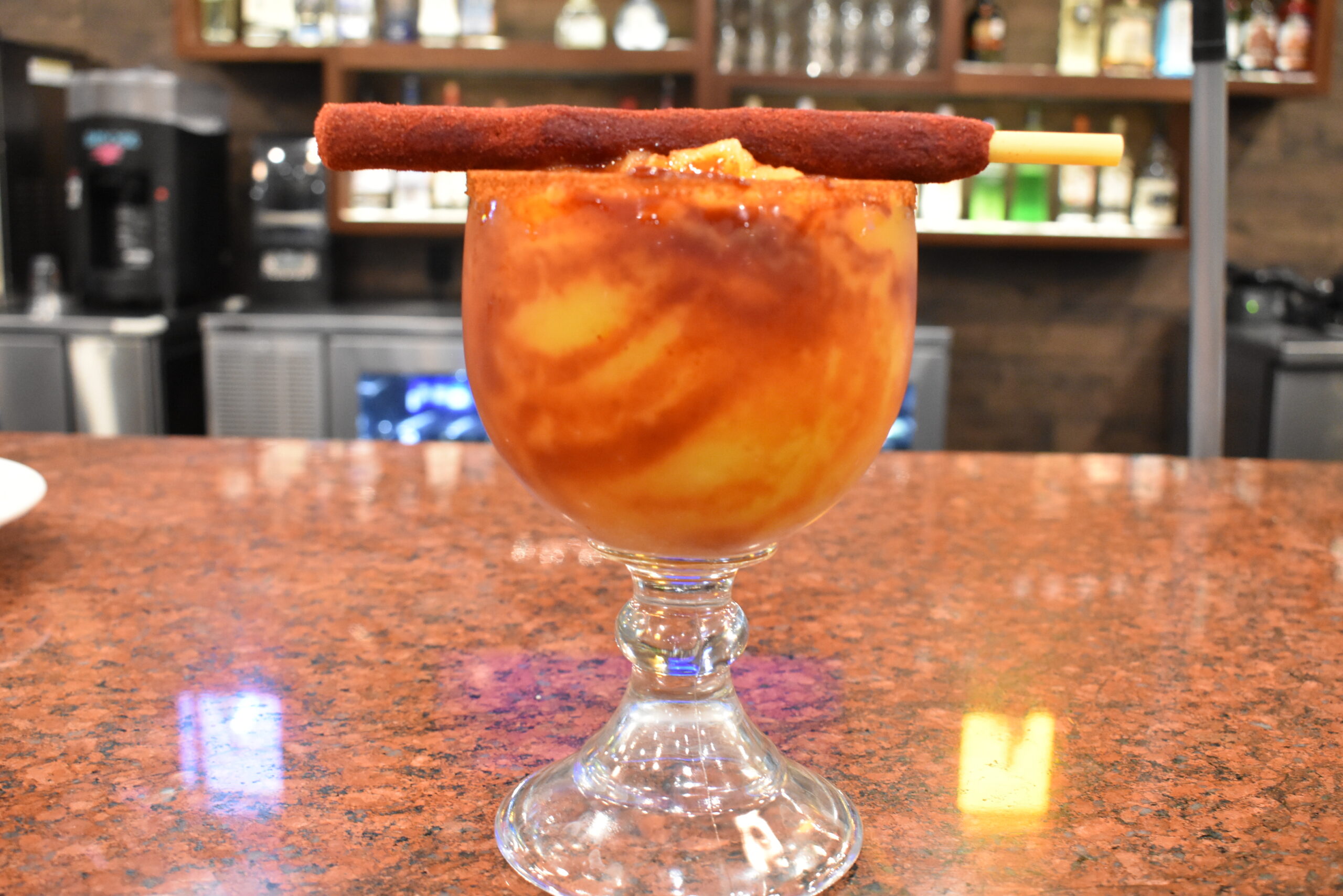 Patrõn Silver Tequila and Patrõn Citrõnge Mango, fresh squeezed lime juice, agave nectar – hand shaken and served with fresh lime wedge and chamoy salted rim.
