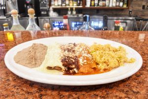 2 chicken enchiladas covered with our home made mole sauce & queso fresco